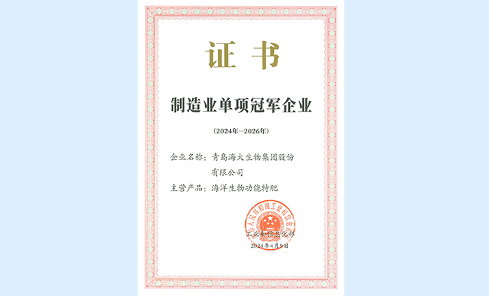 青島海大生物集團(tuán)股份有限公司(原中國海洋大學(xué)生物工程開發(fā)有限公司、青島海大生物集團(tuán)有限公司)成立于2000年8月18日,是一家專注海洋生物資源開發(fā)利用的高新技術(shù)企業(yè),目前是全球領(lǐng)先的生物刺激素研發(fā)和生產(chǎn)企業(yè),也是國內(nèi)外功能特肥的行業(yè)領(lǐng)軍企業(yè)。